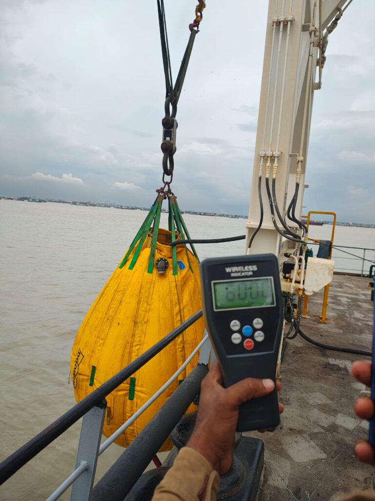 Arrangements of 5 yearly load test of Rescue boat presence of class surveyor at Chattogram port outer anchorage
