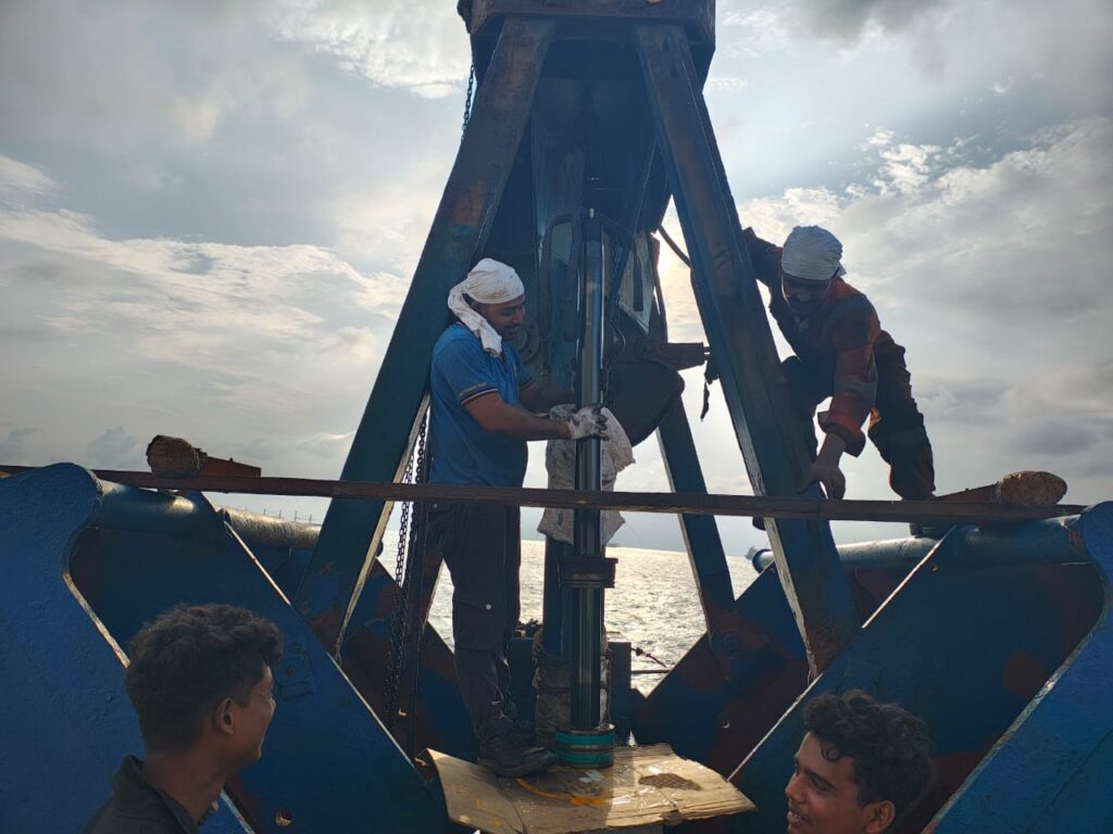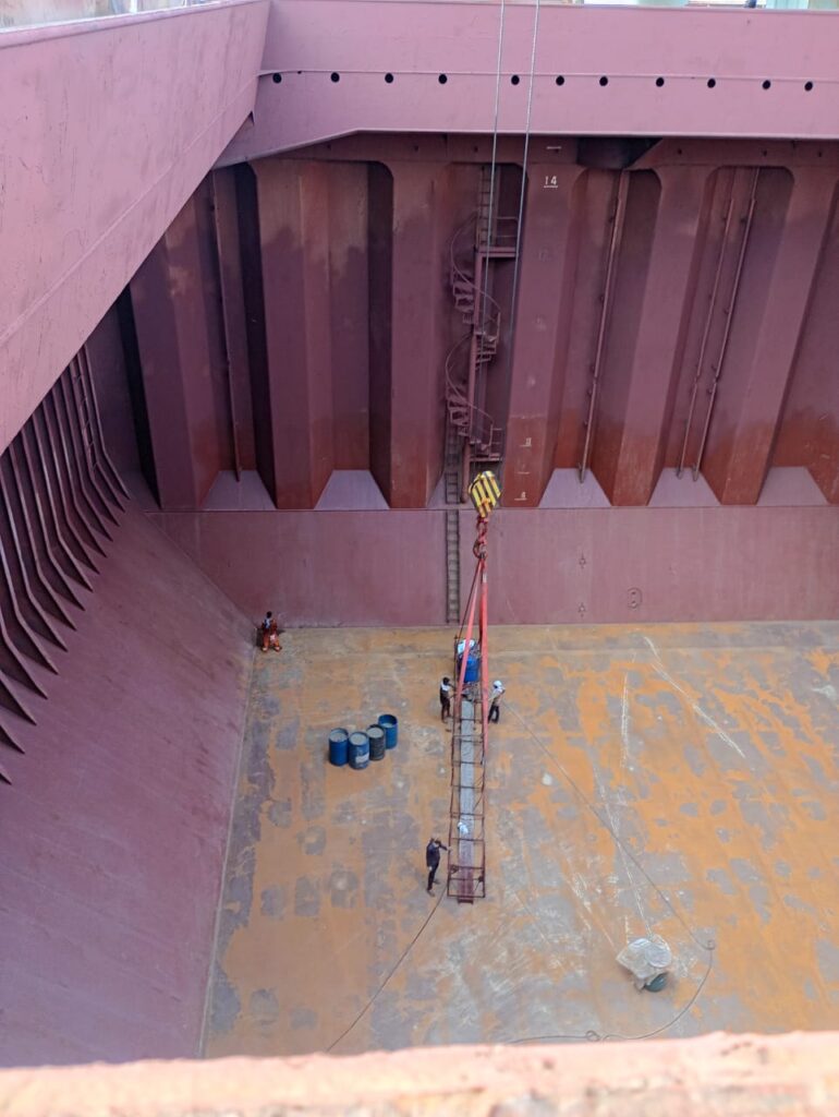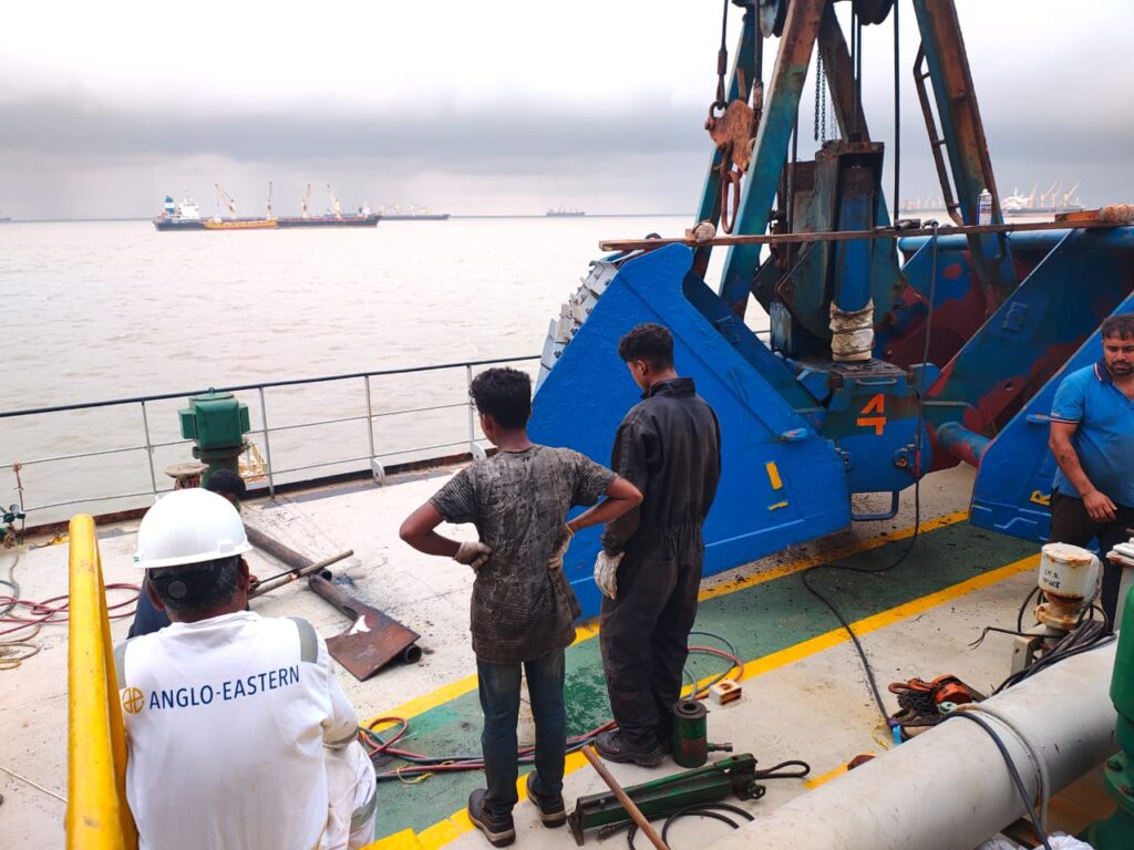 Mooring winch motor overhauling an Arrangements of 5 Yearly load test of Free-fall & Rescue boat presence of class surveyor installations onboard at anchorage area Chattogram port